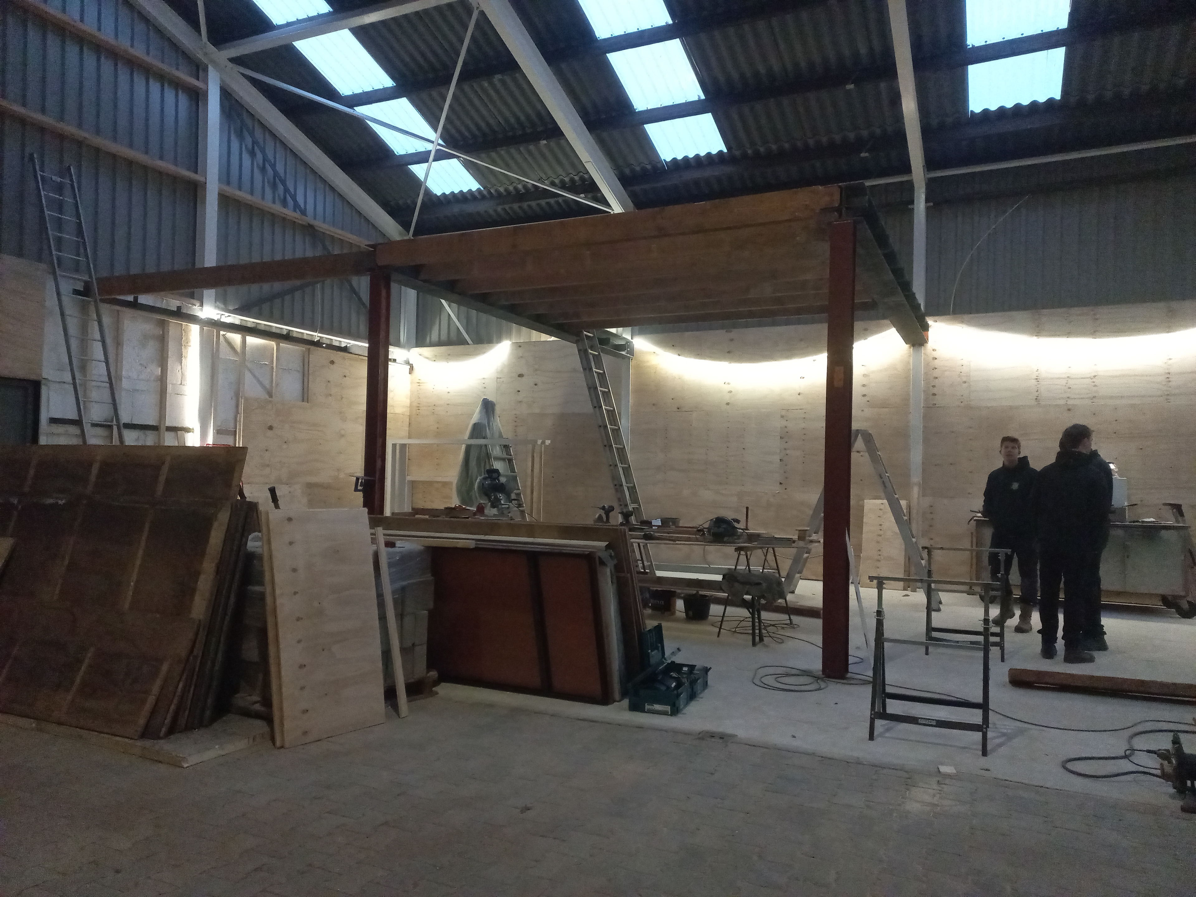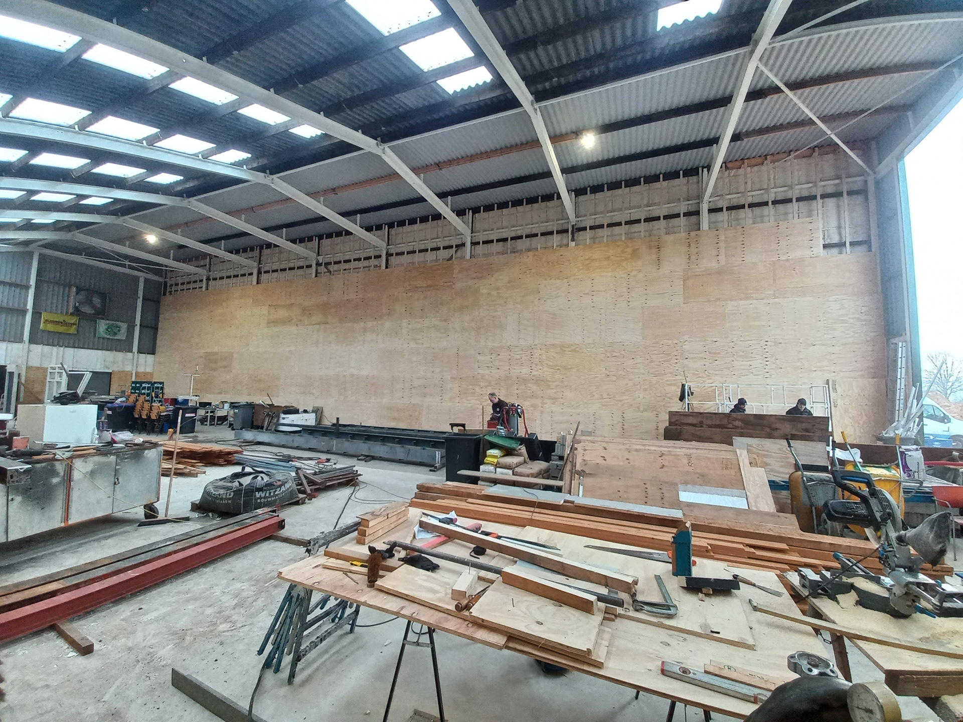 De eerste grote stappen zijn al gezet: de spanten zijn door onze eigen vrijwilligers gelast, de vloer is geklinkerd en de contouren van de hal worden steeds zichtbaarder. Op dit moment wordt hard gewerkt aan de inrichting van de werkplaats en de kantine. In de werkplaats staat veiligheid hoog in het vaandel. Er wordt bewust gewerkt aan een goede en veilige inrichting, zodat iedereen hier prettig aan de slag kan. De kantine wordt een plek waar ontmoeting centraal staat: een veilige en prettige omgeving waar iedereen zich welkom voelt en zichzelf kan zijn.